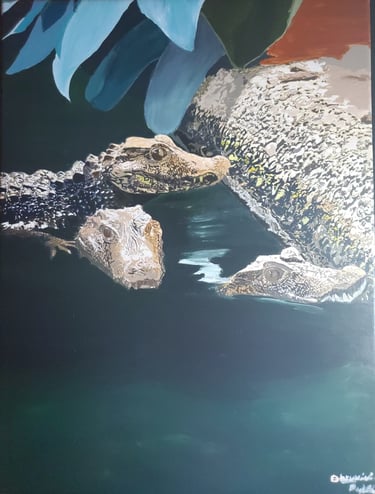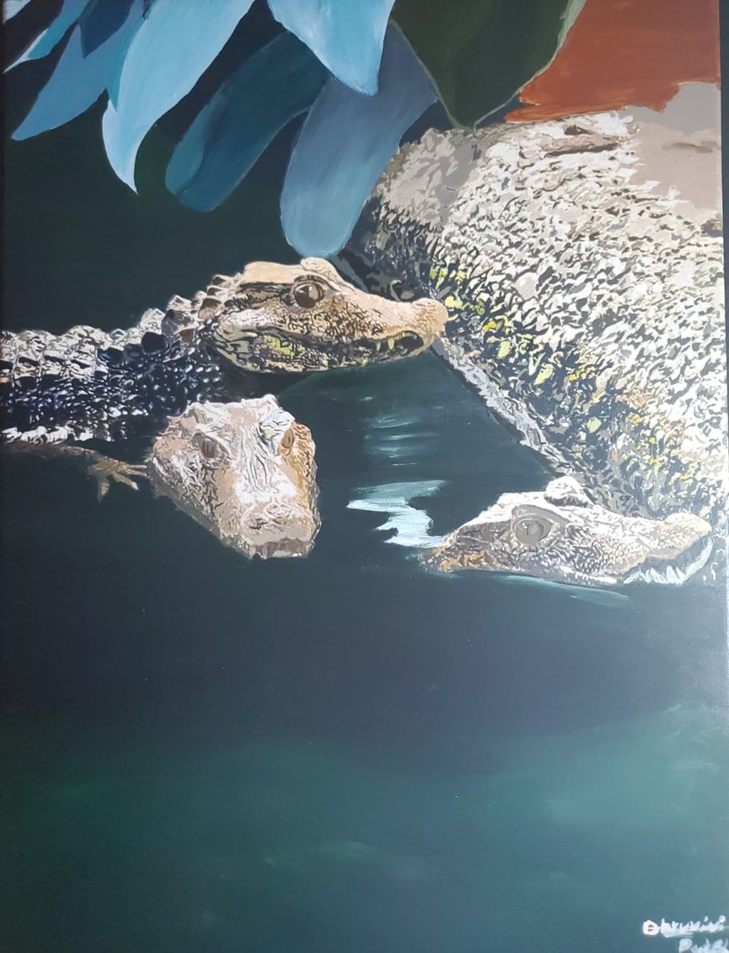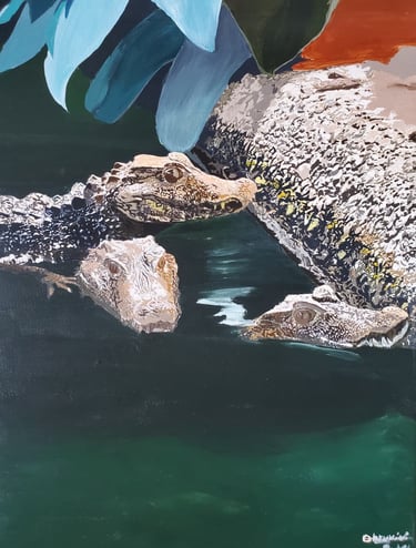 What is the trend that you notice in the fun fact of Juvenile Caimans in the back story of the painting? Is Vulnerability a weakness or the first step in obtaining strength?